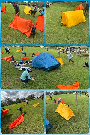 クライミングや救助を行う人達にとってはなじみ深いロープワーク。やったことがない人や使う事は無いけど興味がある人達がロープワークの講習を受けて必ず陥るのが『色々と結び方をやったけど忘れちゃった』なので、出番が無いのが一番だが必需品でもあるツェルトを立てるのに必要な結び方と合わせて講習した。